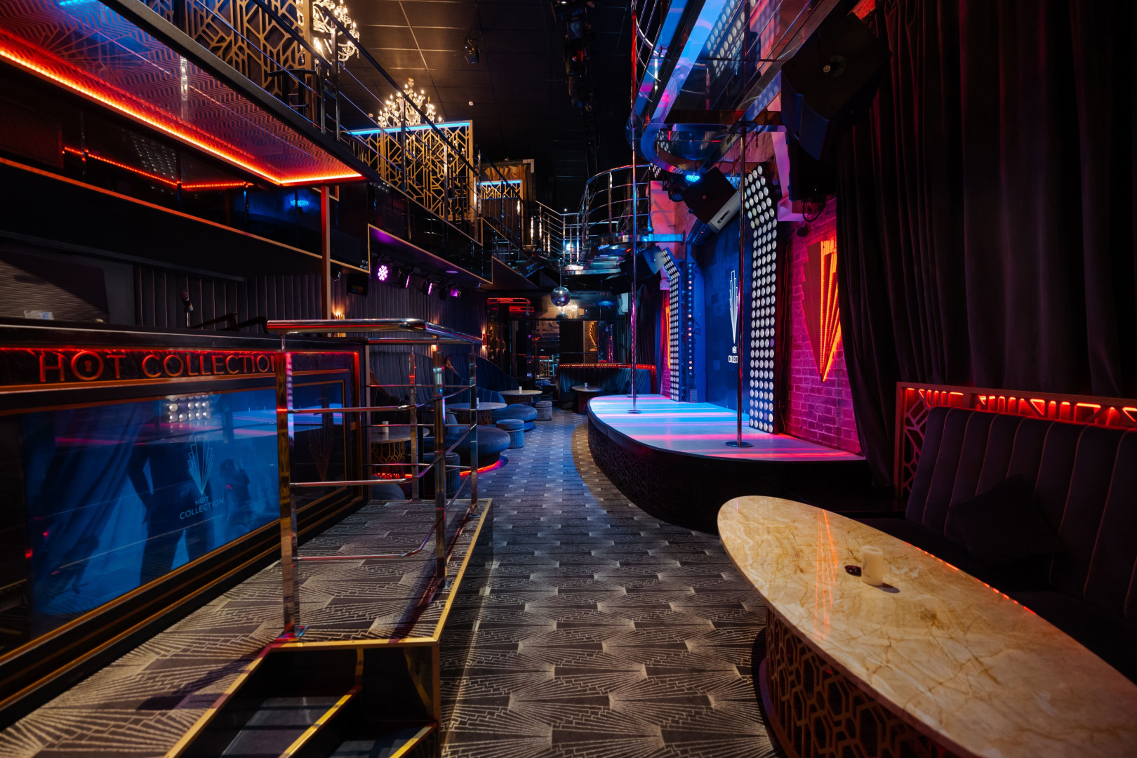 Мужской клуб и караоке на Саввинской набережной. В «Хот коллекшн» три зала: просторный основной зал на 150 персон, караоке-зал, рассчитанный до 60 человек и вип-зал караоке на 20 персон. Интерьер заведения погружает гостей в роскошь: в оформлении использован мрамор и мягкий велюр, золото и стекло. Гостям предлагают микс японской и испанской кухни в авторской интерпретации. Здесь подают, например, цезарь с черными чипсами из риса или севиче из лосося в пряном соусе и сегментах апельсина. В барной карте — алкогольная классика и авторские коктейли. Еще в клубе действует особый «Art Book» для мужчин. Каждый день в клубе проходят разнообразные эротические шоу и арт-перформансы танцовщиц заведения.