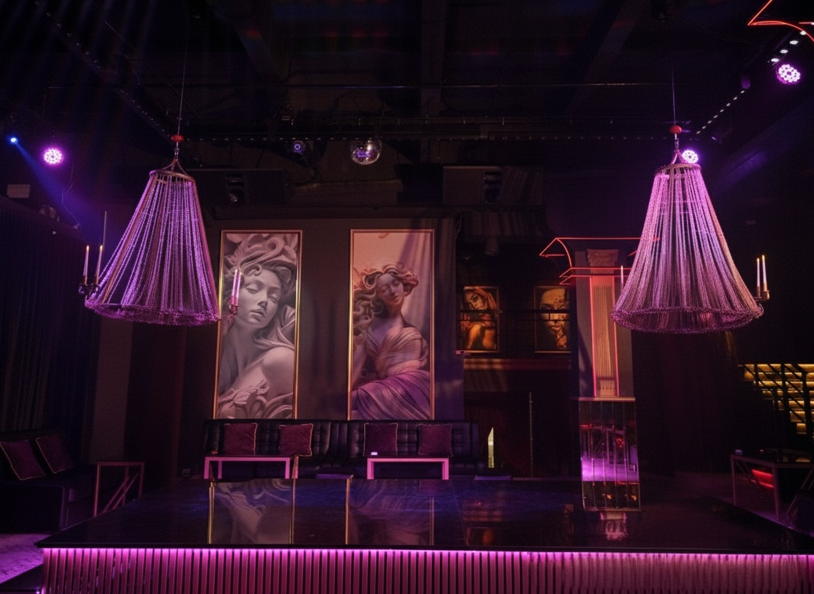 Помещение клуба большое, дизайном занималась какая-то ворона ибо все очень старое и блестящее. Вся эта напускная роскошь для лохов, красные диваны, пыльные шторы, светомузыка, металлические столики и так далее. Антураж сильный. Навеянный кинофильмом Жмурки.